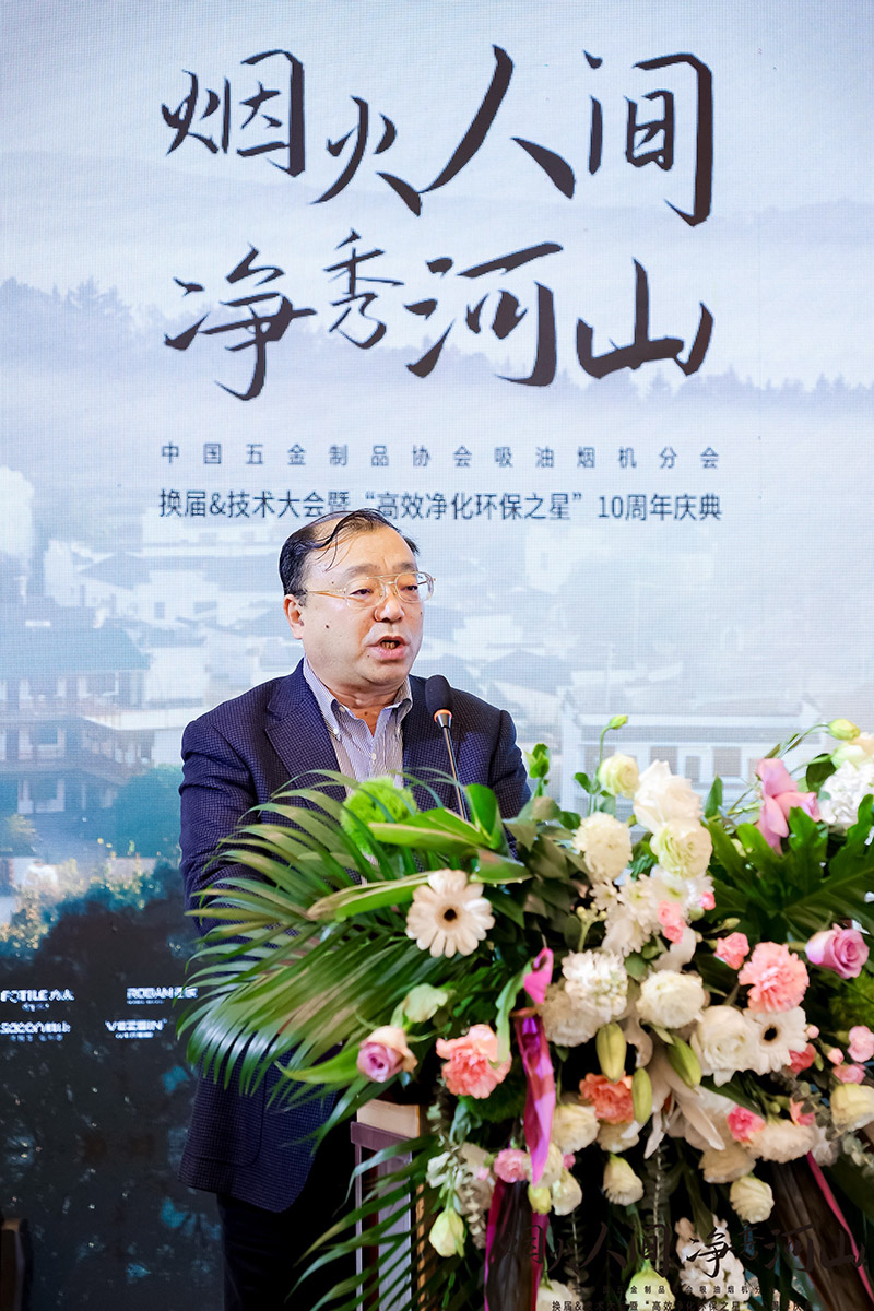 2023年11月28日,以“煙火人間,凈秀河山”為主題的中國五金制品協(xié)會吸油煙機分會換屆&技術大會暨“高效凈化環(huán)保之星”10周年慶典在浙江杭州成功舉辦。中國五金制品協(xié)會理事長張東立,專職副理事長孟凡波,中國五金制品協(xié)會副理事長、中國五金制品協(xié)會吸油煙機分會會長、方太集團董事長兼總裁茅忠群,中國五金制品協(xié)會副理事長單位、中國五金制品協(xié)會吸油煙機分會副會長單位、老板集團總裁趙繼宏,中國五金制品協(xié)會副理事長單位、中國五金制品協(xié)會吸油煙機分會副會長單位、海爾智家副總裁、海爾智家廚電產(chǎn)業(yè)總經(jīng)理吳勇,中國五金制品協(xié)會副理事長單位、中國五金制品協(xié)會吸油煙機分會副會長、嵊州廚具行業(yè)協(xié)會會長、浙江億田智能廚電股份有限公司董事長孫偉勇,中國五金制品協(xié)會吸油煙機分會副會長、杭州德意電器股份有限公司董事長高德康,火星人廚具股份有限公司董事長兼總經(jīng)理黃衛(wèi)斌,浙江萬事興電器有限公司董事長王俊,以及來自副會長單位、理事單位、會員單位等近90家企業(yè)140余名嘉賓代表出席會議。同時,本次活動邀請到中國日用五金技術開發(fā)中心檢驗室主任金鋒,西安交通大學教授劉小民,奧維云網(wǎng)總裁郭梅德,中國科學院過程工程研究所研究員李雙德,創(chuàng)研智能集團董事長張人斌分別作主題分享。
