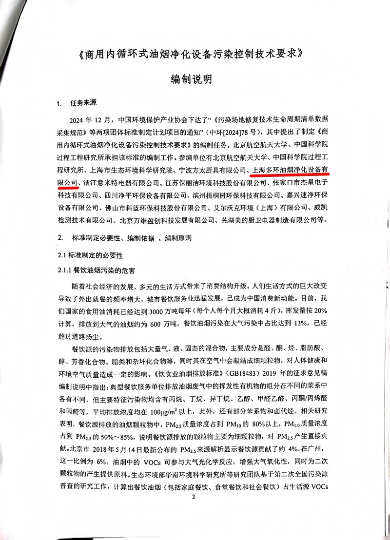 上海多環(huán)油煙凈化設備有限公司很榮幸與中國環(huán)境保護產(chǎn)業(yè)協(xié)會的專家教授及行業(yè)大咖們共同參與《商用內(nèi)循環(huán)式油煙凈化設備污染控制技術要求》編制工作!🔎每一次技術研討、每一條標準制定,都是對綠色餐飲、潔凈空氣的鄭重承諾。期待新標準早日落地,為行業(yè)規(guī)范賦能,讓油煙凈化更高效、更環(huán)保!