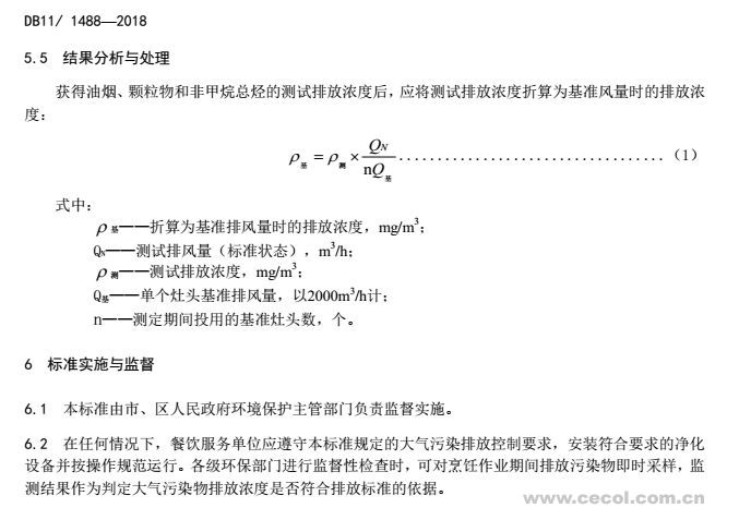 2018年北京市《餐飲業(yè)大氣污染物排放標(biāo)準(zhǔn)》(DB 11/1488-2018)