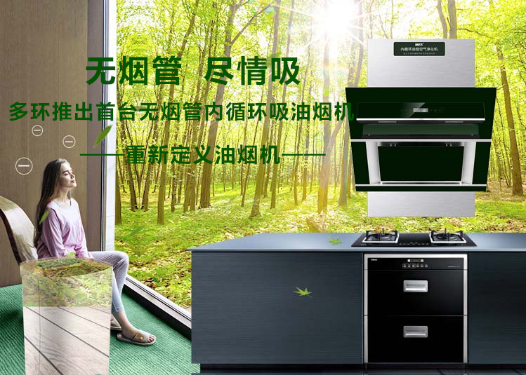 【無(wú)煙管內(nèi)循環(huán)吸油煙機(jī)】:將烹飪過(guò)程中產(chǎn)生的油脂、煙霧、有害氣體、細(xì)菌和異味進(jìn)行收集和凈化處理,無(wú)需對(duì)外接管排放,實(shí)現(xiàn)“室外不排放,室內(nèi)無(wú)污染”。還可兼用于去除新裝修房子的甲醛等,使室內(nèi)空氣長(zhǎng)久清新。